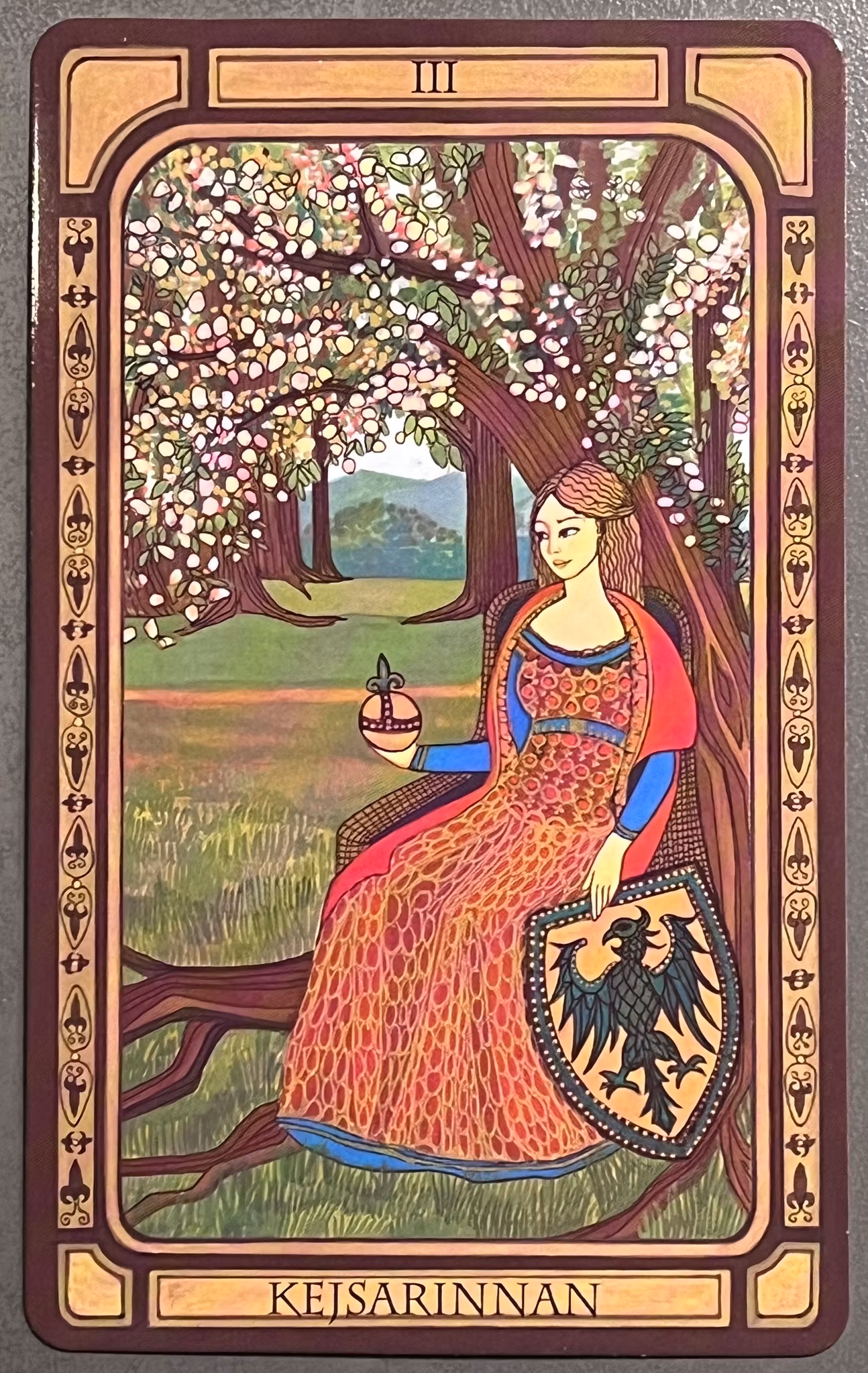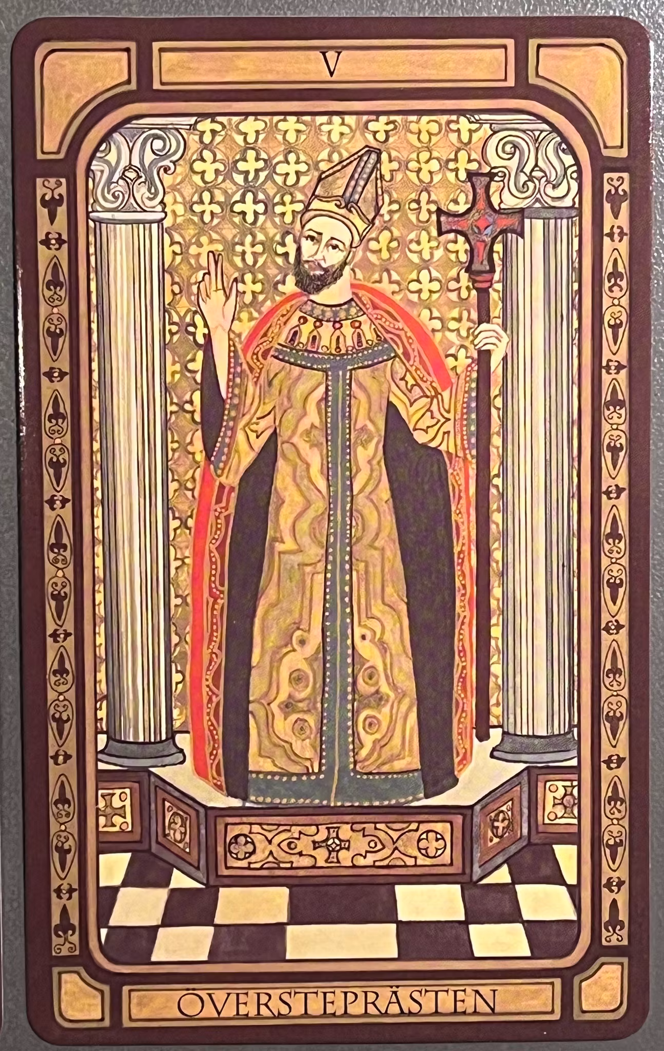 Den 64-sidiga boken förklarar steg för steg ur korten ska läggas ut och hur de ska tydas, både den rättvända och omvända betydelsen av korten presenteras. Med boken och den gyllene kortleken kommer du att få insikt i tarottolkningens rika symbolvärld och hjälp att tyda det förflutna, nuet och framtiden.